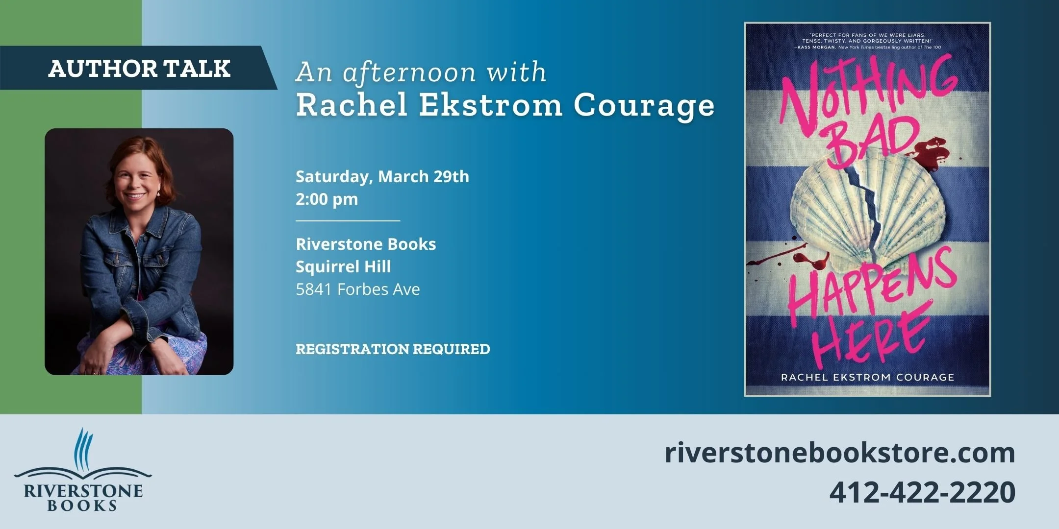 We are pleased to welcome local author Rachel Ekstrom Courage to our Squirrel Hill store for a Nantucket Beach Party themed author talk on her upcoming book, Nothing Bad Happens Here. After the author talk, we will have a time for Q&A with the audience and book signing. Refreshments will be provided. We can't wait to see you there!