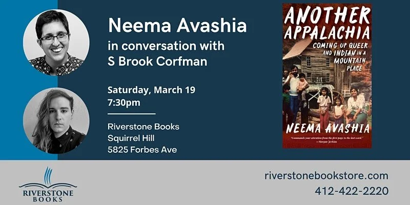 West Virginia native Neema Avashia will be joined in conversation by S Brook Corfman to celebrate her debut memoir, Another Appalachia: Coming Up Queer and Indian in a Mountain Place